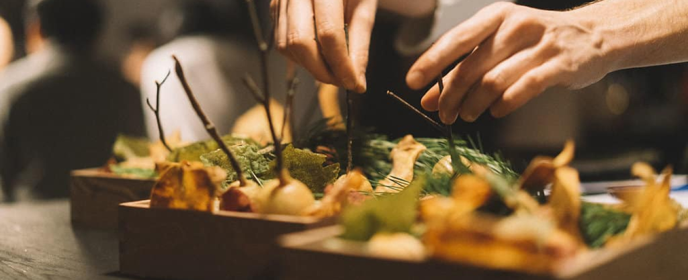 It’s a perfectly dark Autumnal night as we entered a candle-lit industrial space for chefs Andrea Iannicella and Clémence Fabry‘s pop-up dining experience, ‘A Walk in the Woods’.