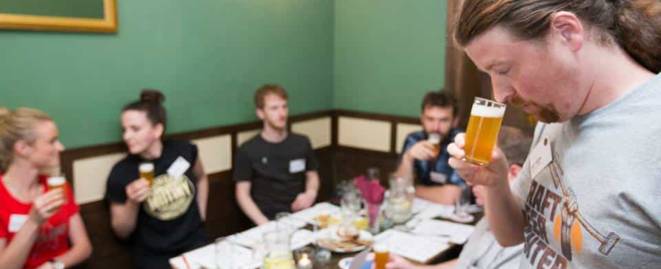 To get more info on the subject, I recently went along to a craft beer tasting session for the Berlin press by the GACBB (The Global Association for Craft Beer Brewers), which took place at Hops and Barley in Friedrichshain. Having worked in restaurants in the past, I’m used to what goes on at wine-tasting, and as it turns out a beer-tasting is no different. Before you taste the beer you have to listen to the expert, in this case the highly knowledgable and friendly Rory Lawton (pictured below) was on hand to talk us through each craft beer’s background, with suggested tasting notes on each. Then comes the sniffing part, and finally you swirl it around your mouth and enjoy the taste. No worries there!