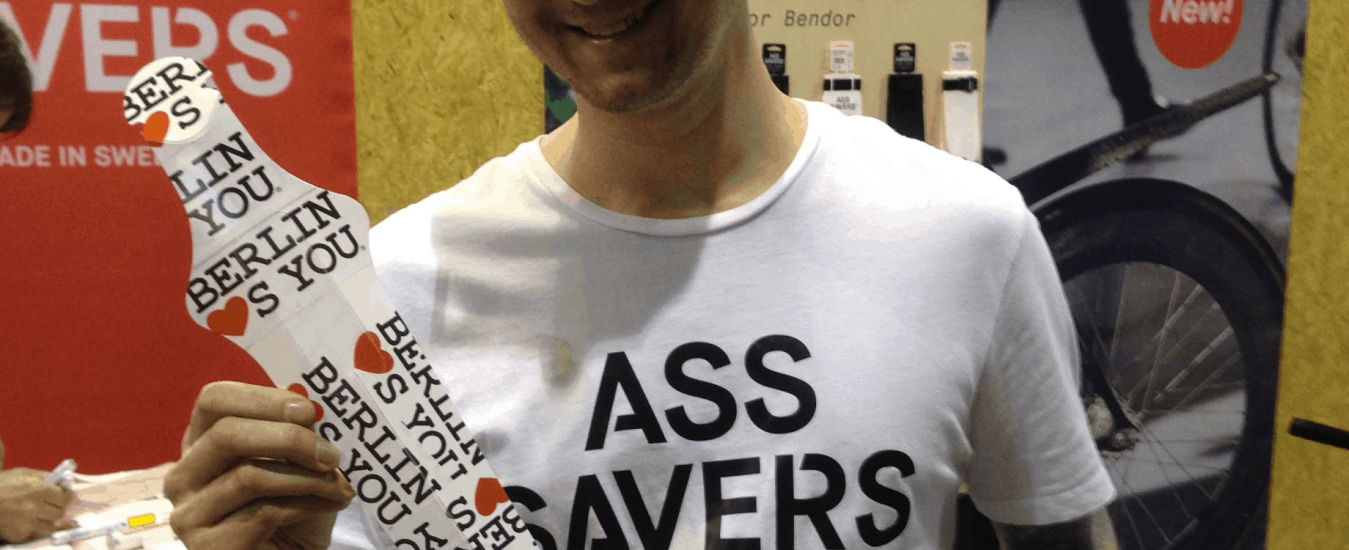 Ass Savers are passionate about keeping your ass clean. Seriously. They offer a variety of easy to install mud guards and can print them with your own design. We made this one-off Berlin Loves You Ass Saver.