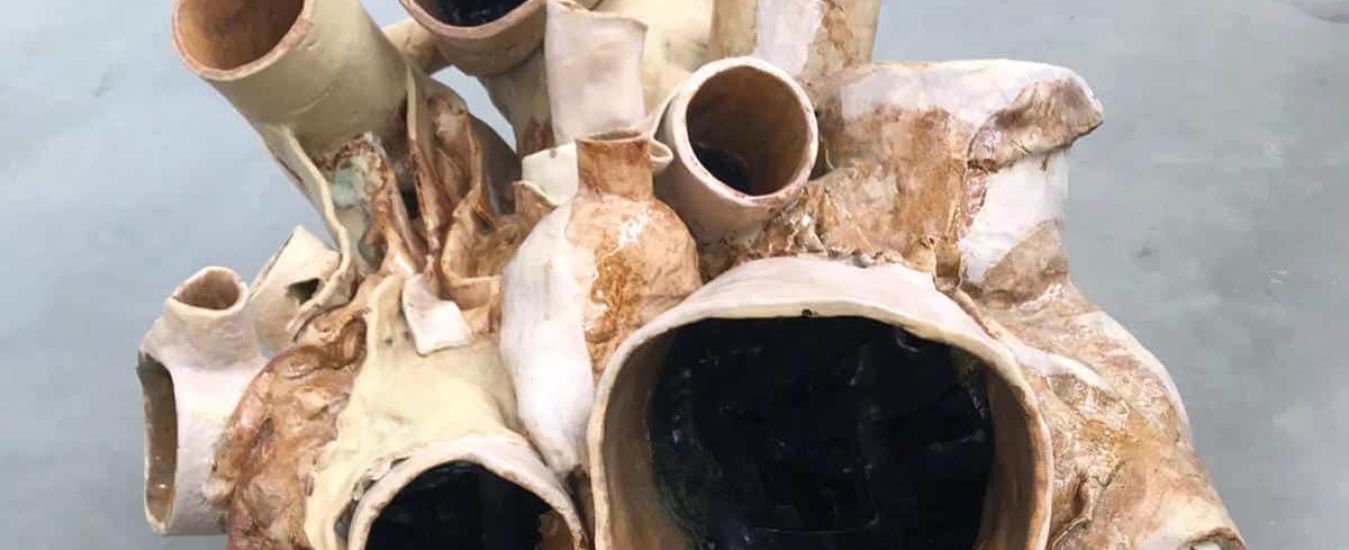 Melsheimer recreated the heart in three replicas and, if you peer into their interiors, you will see the supporting structures which were used to make the ceramic casts. The artist decided to leave the scaffolding inside the whale hearts to create an impression of internal architecture, thus incorporating her art’s prevailing theme: the interplay between architecture and urban landscapes and human and animal life.