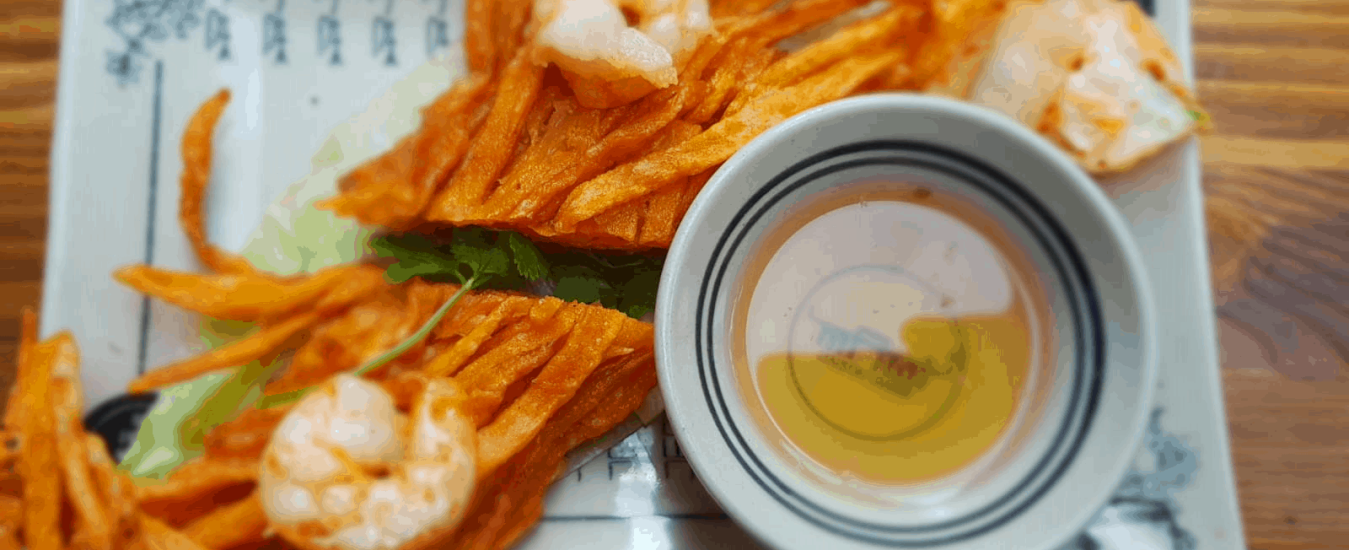 The prawn pancakes were made of sweet potato and were perfectly crispy on the outside, yet soft on the inside, and came with a tangy ginger dip.