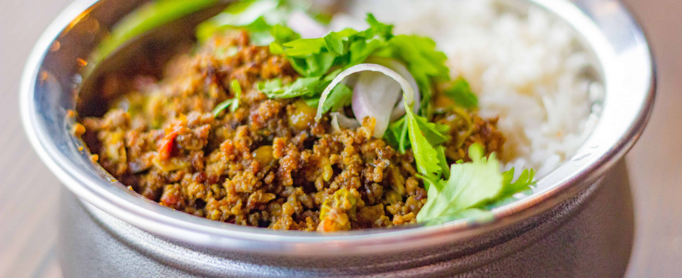 It’s rich, filling, satisfying. Warming spices and a heavy handful of coriander, mint and dill cut through the richness, balancing the dish out and making it delicate. The texture of the finely-ground goat keema gives a great mouth-feeling that soon leads to shovelling it down by the spoonful.