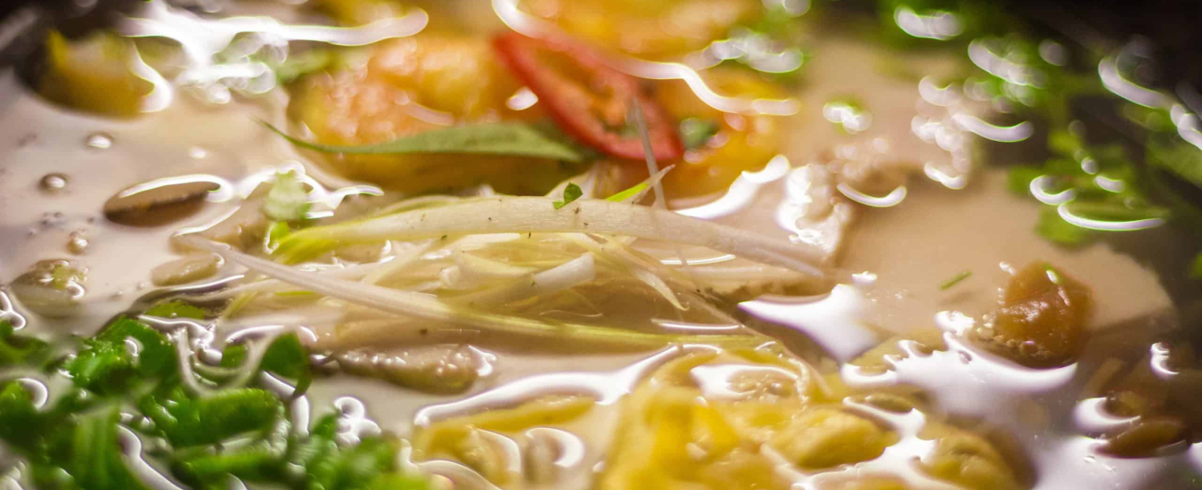 Whilst both noodle-based soups, pho differs greatly from ramen. Pho is made with rice noodles, as opposed to the wheat noodles found in ramen. It’s lighter, fragrant and freshened with citrus and herbs, whereas ramen is more substantial, savoury and heavy.
