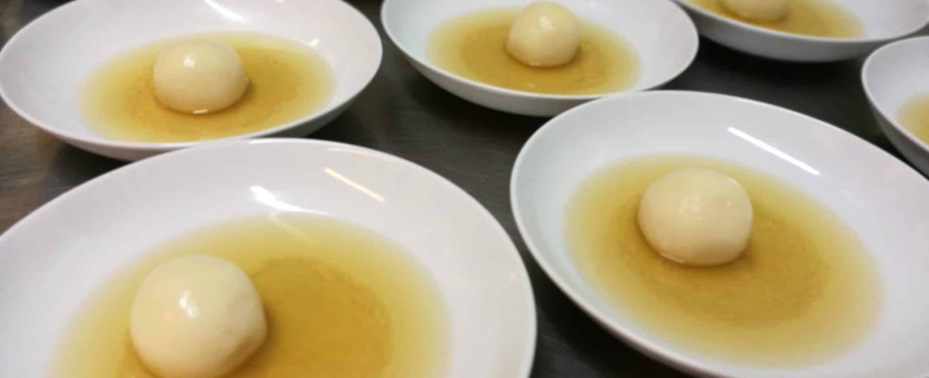 Before our first course came out, Vicky stood before us and introduced the dish with a self-written prose poem which connected the dish to her own childhood memories of the flavours we were about to taste. A hush spread over the tables of diners, and we craned our necks to hear. Whilst this was going on, her cooking partner Martin Ku began to bring out our starter: “Bathing” rice noodles in a Thai broth.