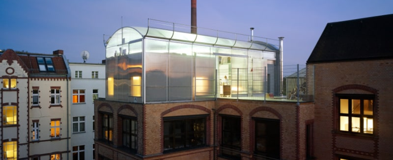 Wohnen im Gewächshaus auf einem Dach im Wedding